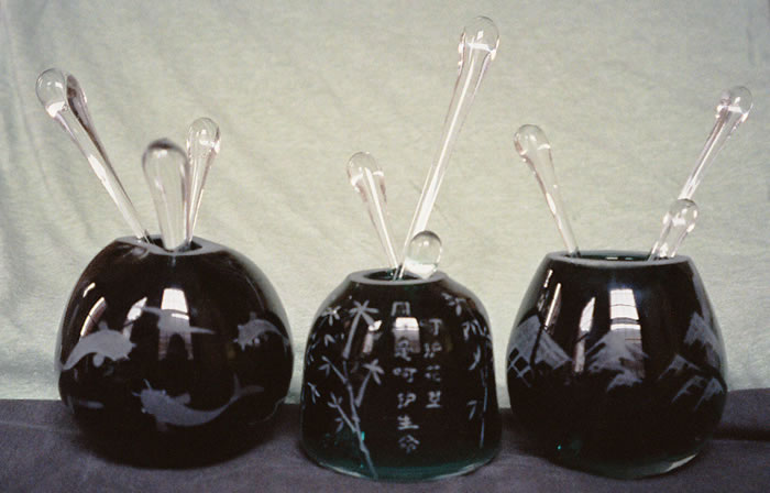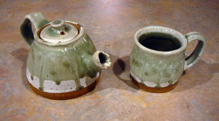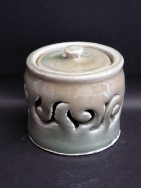 I have wheelthrown pottery, clay sculptures, and blown glass pieces. Please choose a detail below to see the larger image.
